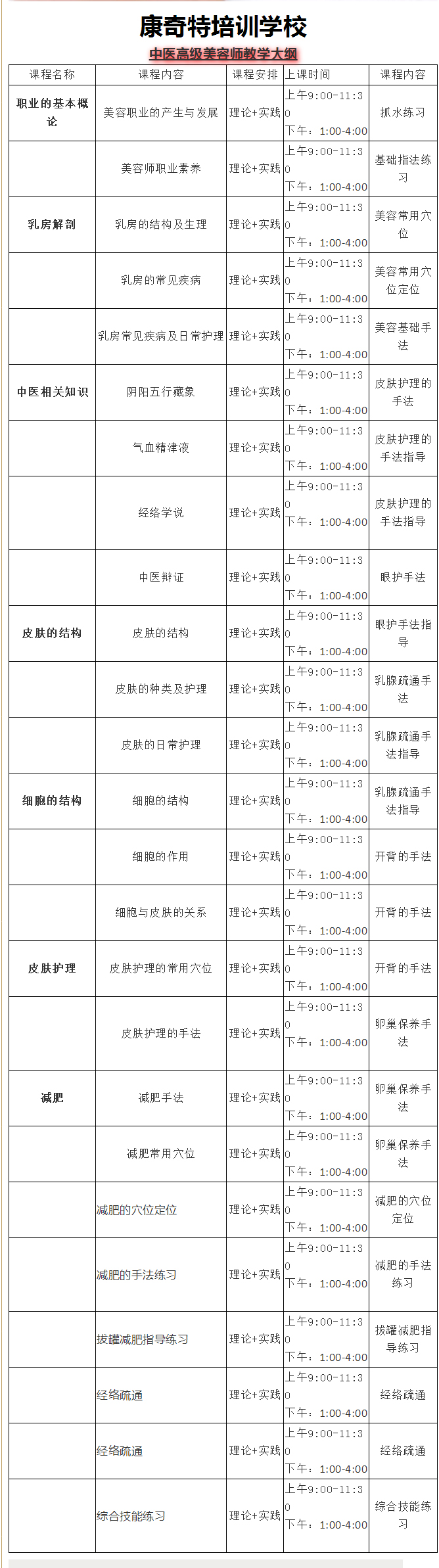 学期一个月,共25天课程,学费3980元,零基础入学,免费试听,循环授课,学会为止,理论与实践相结合教学,由临床和教学经验丰富的专家授课,一对一指导操作,保证学员学习期满可熟练进行临床操作,毕业考取全国通用证书,推荐工作或提供个人开店的业务指导。
