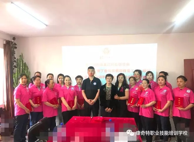 哈尔滨市道里区妇联主席,康奇特职业技能培训学校张校长、 第三届2019“紫丁香母亲素质教育工程”项目受益者合影