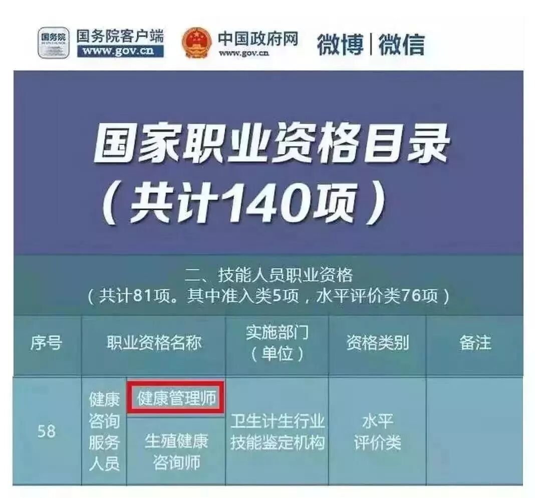 《国务院关于促进健康服务业发展的若干意见》(国发【2013】40号文)第七条明确要求,健全人力资源保障机制,加大健康管理师等人才培养和职业培训力度。